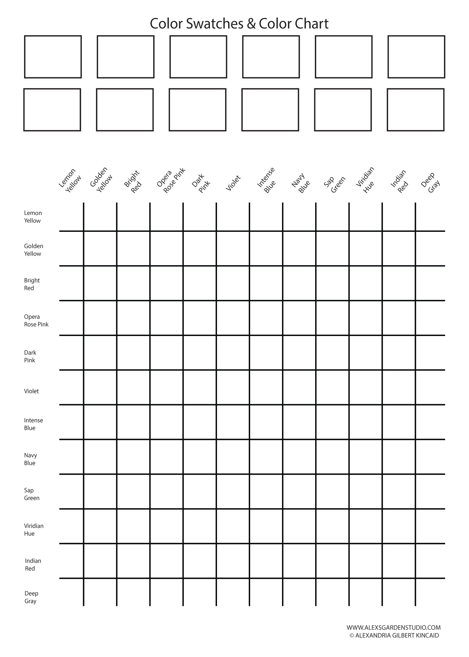 - A color mixing chart so that you can see the full range of colors and practice mixing new ones!